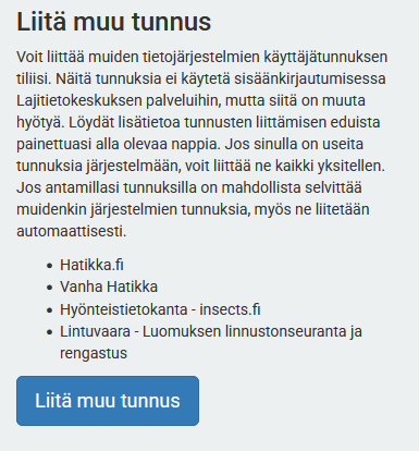 Liitä muu tunnus Laji.fi-tiliisi